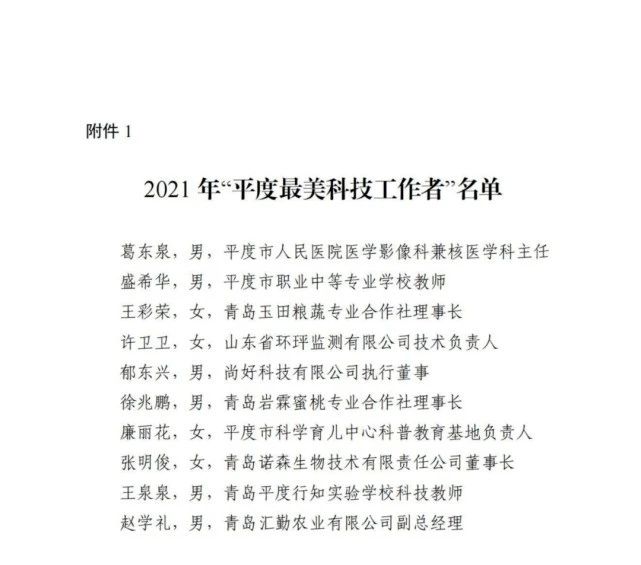 会上播放了10名 “2021年平度最美科技工作者”宣传视频,与会领导嘉宾为青岛诺森生物技术有限责任公司董事长张明俊女士及相关获奖者进行了颁奖仪式。